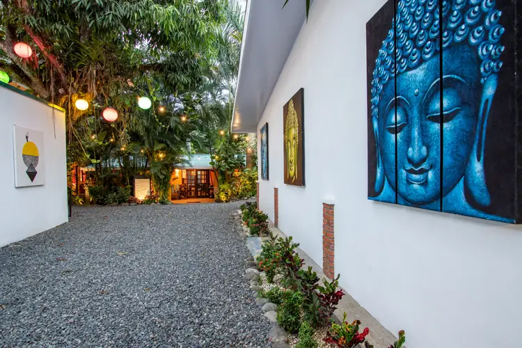 Buddha House Airbnb is a highly-rated property in Jaco, Costa Rica, offering a serene oasis for private events and relaxation. The property features lush gardens, a stage for live music, a jacuzzi-style pool, a restaurant kitchen, and much more. With 12 suites and 3 rooms accommodating up to 32 people, guests can enjoy amenities like high-speed Wi-Fi, laundry facilities, and air conditioners.